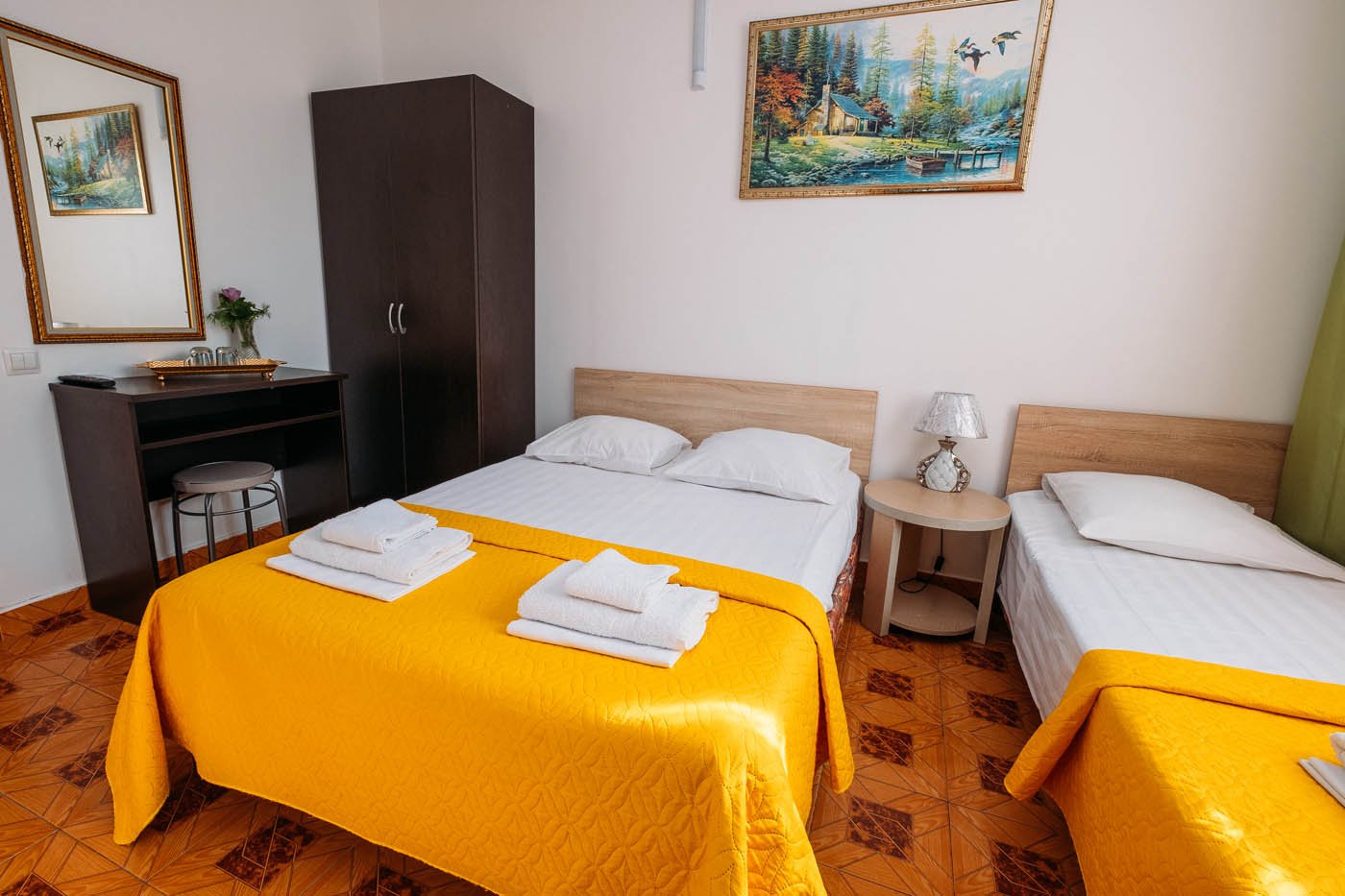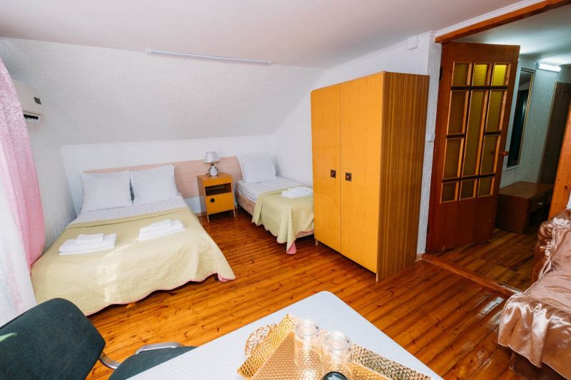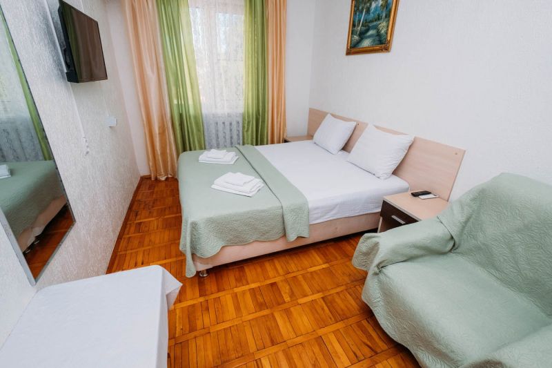 Трехэтажный корпус отеля расположен на огороженной территории на Терновой улице. Для размещения гостям предлагаются комфортабельные и уютные номера, разной вместимости и категории комфорта. В каждом номере предусмотрена система кондиционирования, есть телевизор, электрочайник, доступна сеть wi-fi, в санузле – душ. Некоторые номера оснащены собственной мини-кухней и балконом.