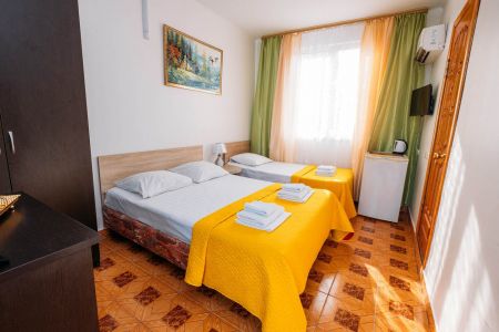 Отель находится в городе Анапа, в 20 минутах ходьбы от моря. В шаговой доступности – детский парк, парк аттракционов, магазины и кафе. Недалеко – центр города и главные достопримечательности: театр, парки, аквапарки, музей Горгиппия и центральная набережная. До аэропорта и железнодорожного вокзала всего в 15–20 минутах пути на авто.